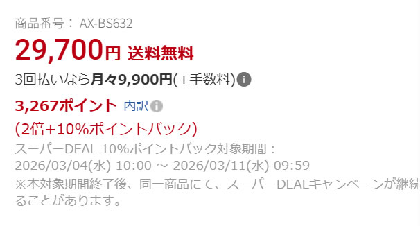 ✔ 2024年に新型SOYOシングル(AX-BS632)が登場し、旧型¥49,800→¥29,700へ大幅値下げ。シリーズ累計32万台突破の実力派です。