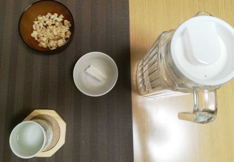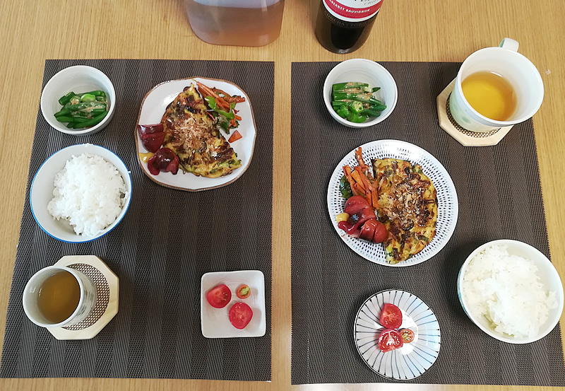 1週間前に作ったおでんも冷凍で残ってたので添えてみました・。赤ワインにピッタリあいます・。カレーの残りは全く出ません。皿に2人前盛ったらキッチリなくなります・。