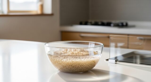 - 浸水時間を長くとる:最低6時間、できれば12時間。夜寝る前に水に浸けて、翌朝炊くのが楽です。